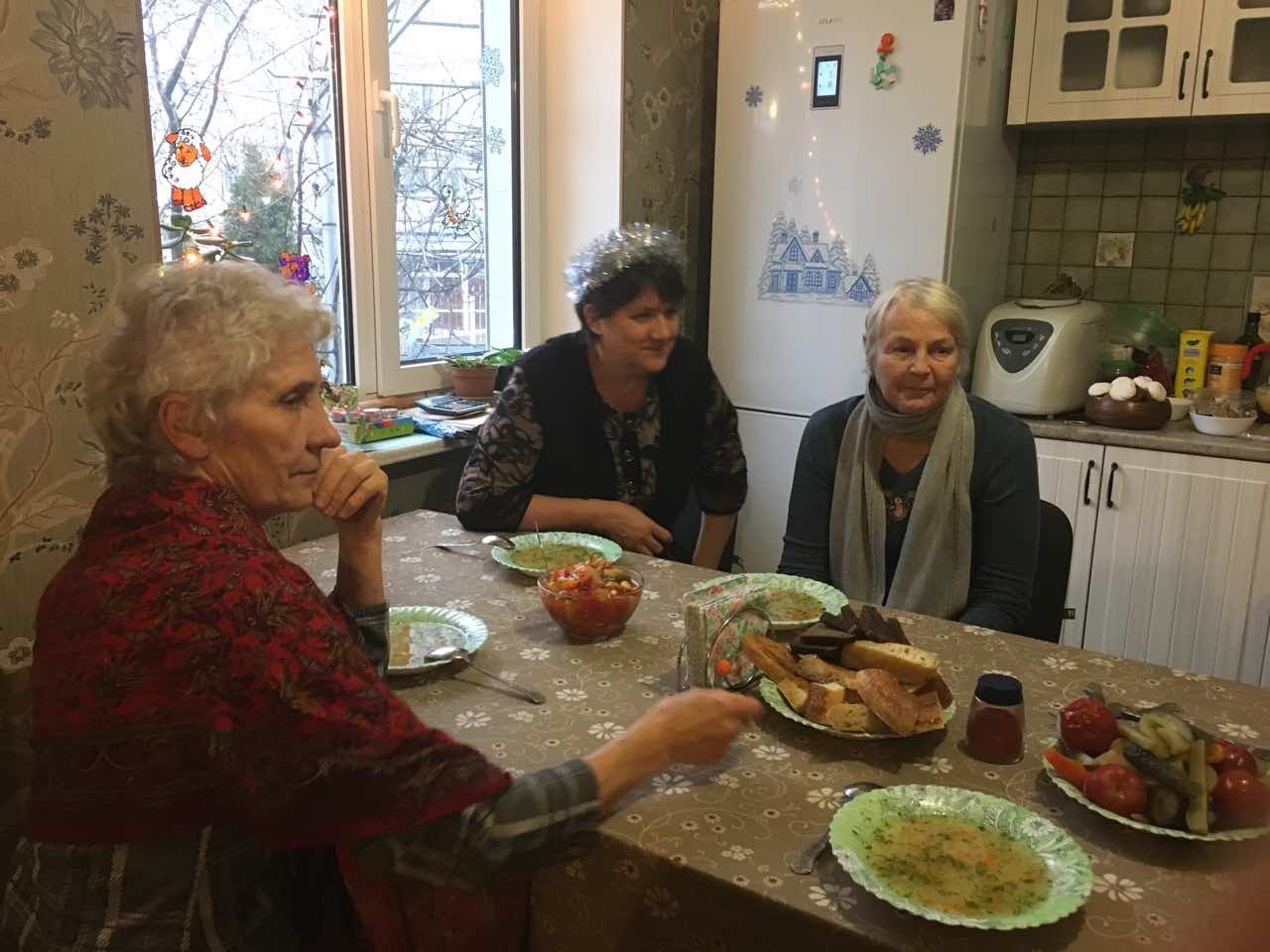 В то воскресенье «Золотое поколение» навестило двух стариц: Чоп Александру Васильевну (88 лет) и Глаголеву Любовь (72 года). Глаголеву Любу навестили первой. У нее был инфаркт, и поэтому ей сейчас сложно выходить из дома. Александра Васильевна иногда приезжает на собрание, но не всегда получается. Она рассказала, что порой удивляется, что незнакомые ей люди в церкви подходят к ней, обнимают ее и говорят ей о том, что о ней молятся.